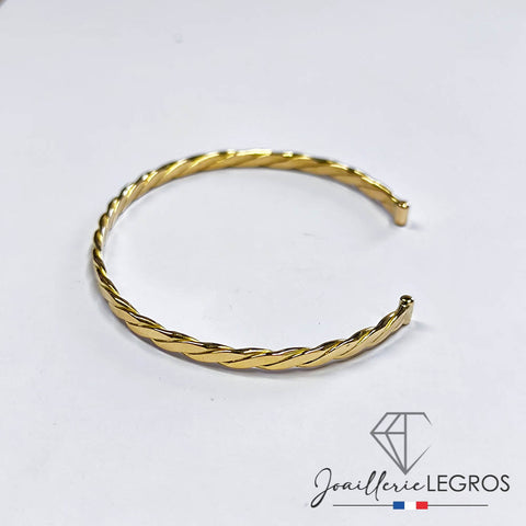 Bracelet homme jonc torsadé tressé en or 18 carats