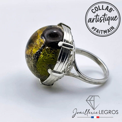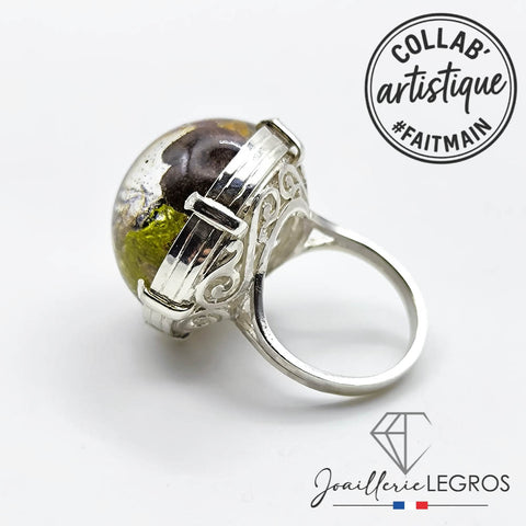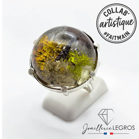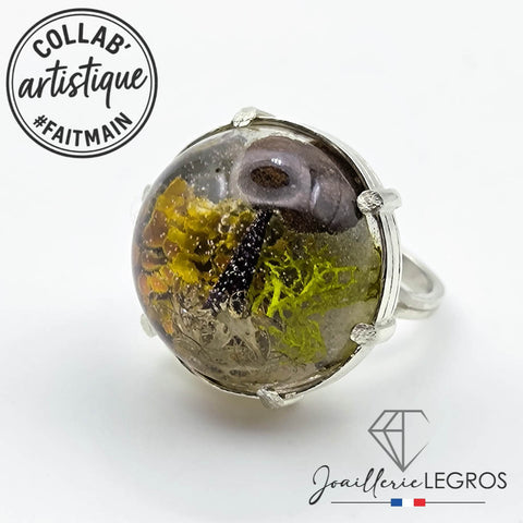 Bague en résine féerique "Forêt enchantée" monture argent esprit Art Nouveau