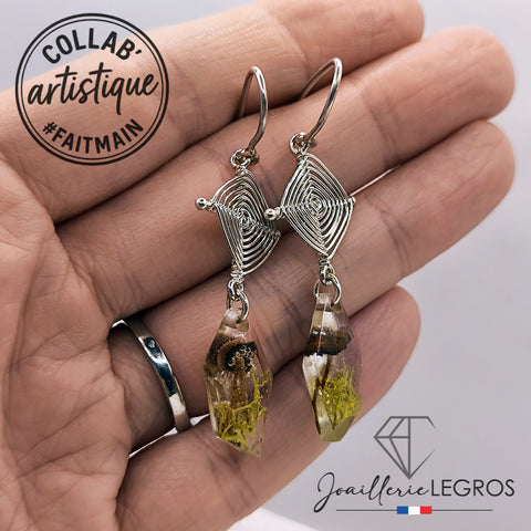 Boucles d'oreilles Champignon Lichen Résine Epoxy et Argent 925