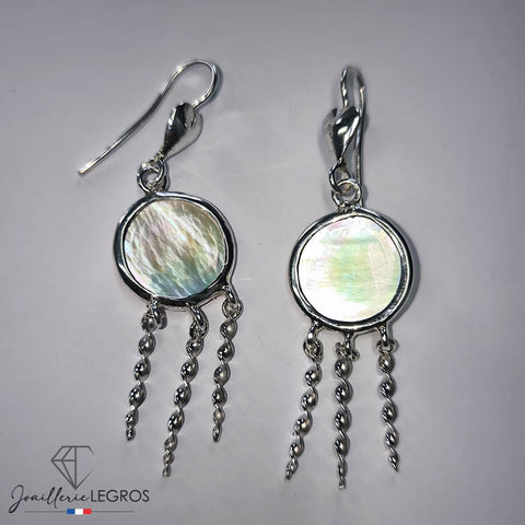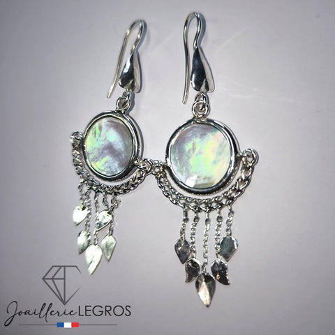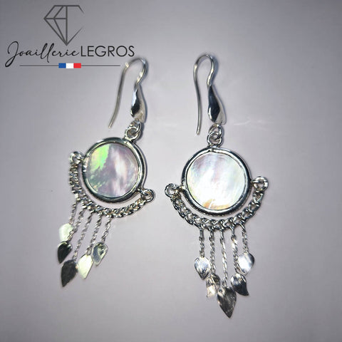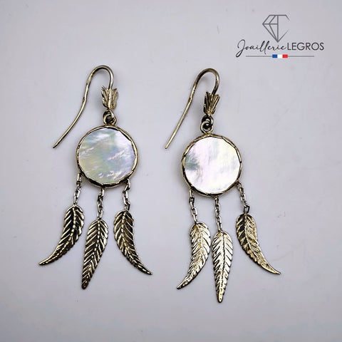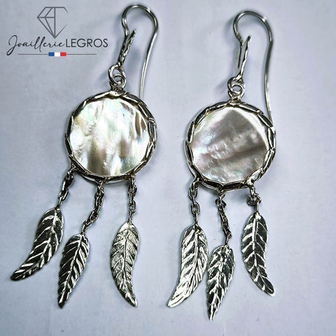 Boucles d'oreilles attrape rêves Nacre blanche et argent 925